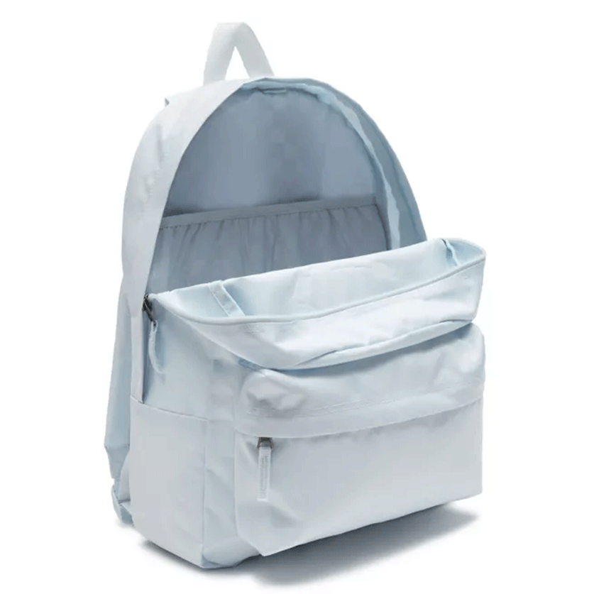 La mochila Blanca de P&P tiene un diseño de dos bolsillos con forro repujado en el panel interior trasero. Tiene un compartimento principal con cierre de cremallera, un bolsillo frontal con panel de organización para llevar tus cosas ordenadas y una funda interior para portátil.